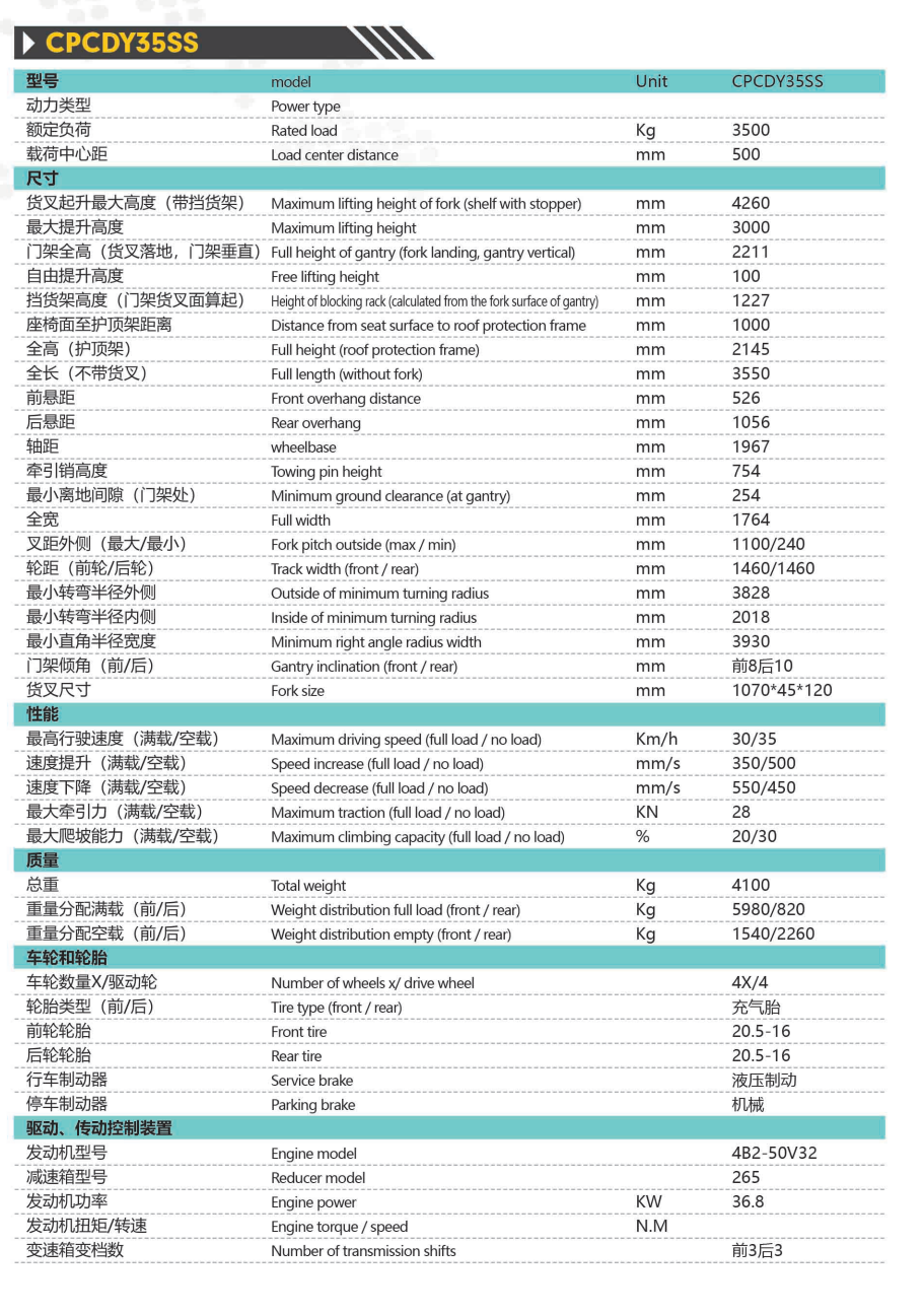 • 產品名稱: 廣東CPCDY3.5SS封閉式駕駛室超短款越野叉車